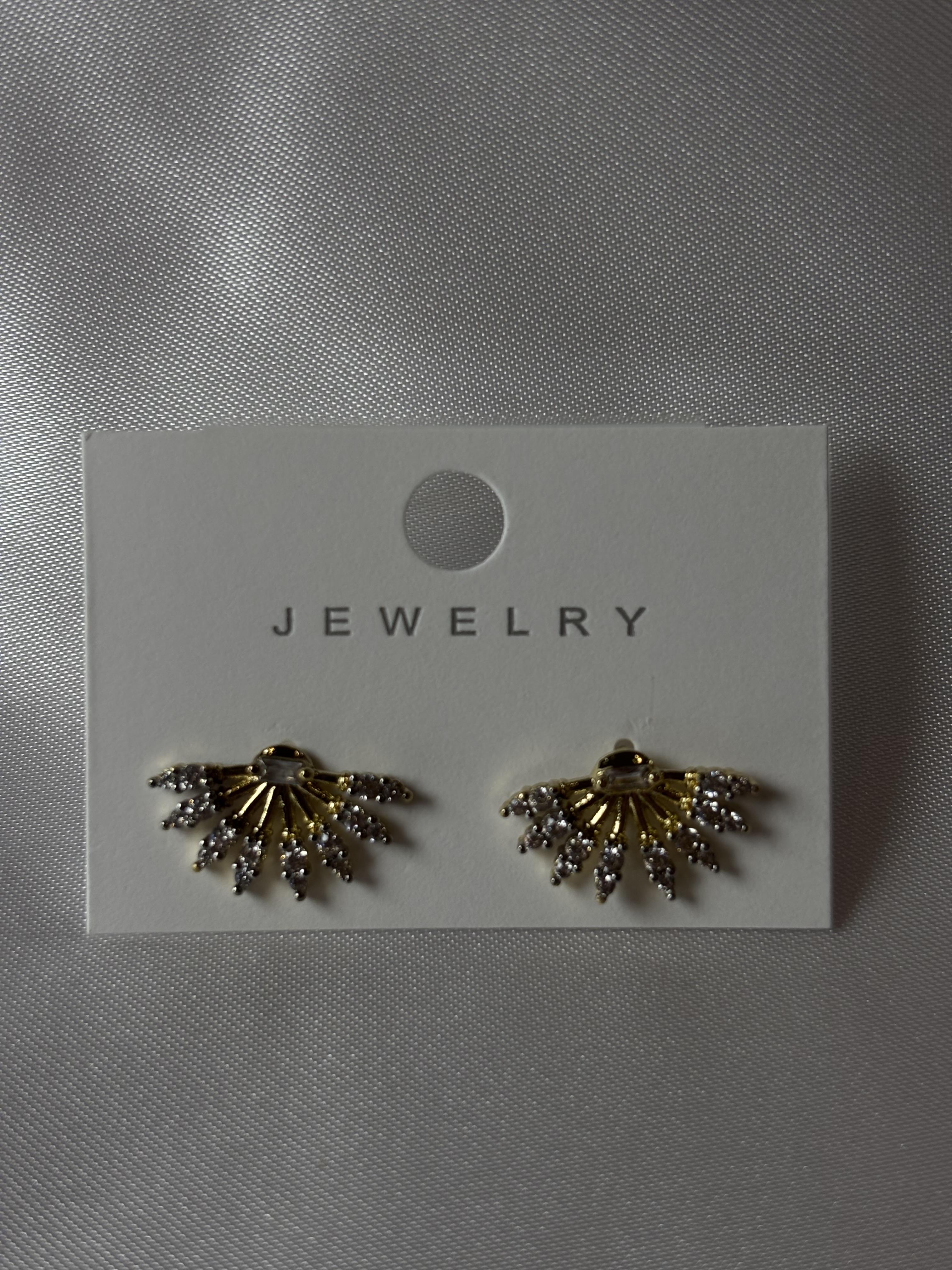 Gold taşlı yelpaze küpe