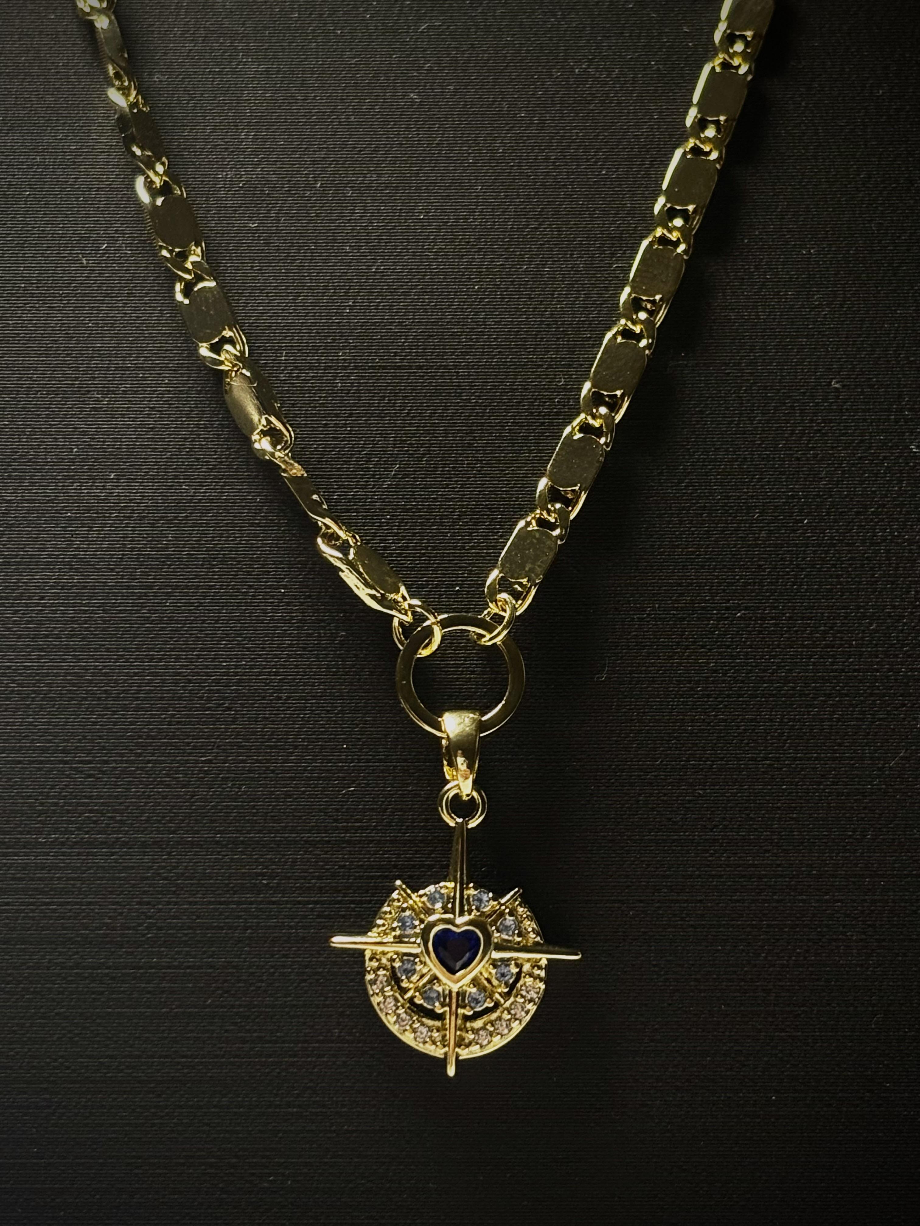 Pusula model ortası kalpli kolye